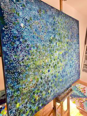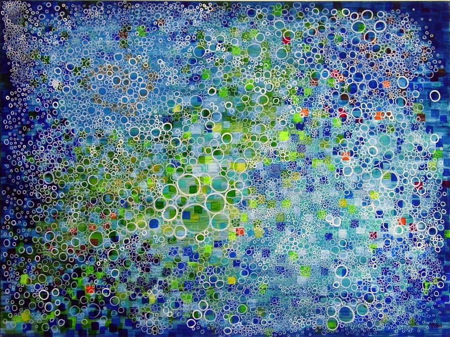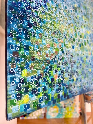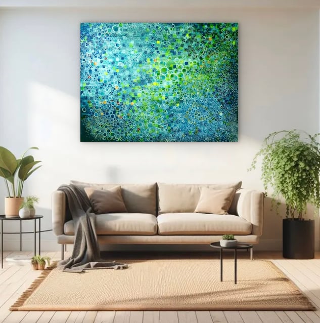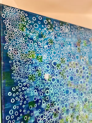 Relax and observe yourself. Each of us knows the calming effect you experience when you sit by the sea, a lake or a river and just watch the water. It acts like a meditation. You will be given a deep, inner peace. This work of art deals with exactly this effect. Immerse yourself in the world of water - Bubbles Blue - and achieve inner peace and balance.