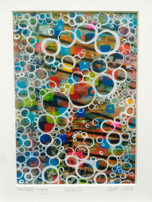 Jedes Bubblesbild erzählt seine eigene Geschichte und vermittelt eine individuelle Interpretation meiner Intention. Beim Betrachten des Kunstwerks geschieht nicht nur etwas mit der Aufmerksamkeit des Betrachters, sondern auch im Malprozess selbst. Ich bin lange Zeit meditativ in Kontakt mit dem Bild und beginne meine Erzählung bereits beim ersten Kreis, den ich auf die Leinwand male. Der Kreis ist ein faszinierendes Symbol, das unser Innerstes berührt - schließlich bestehen wir alle aus kreisförmigen Zellen als Bausteine unserer Existenz.