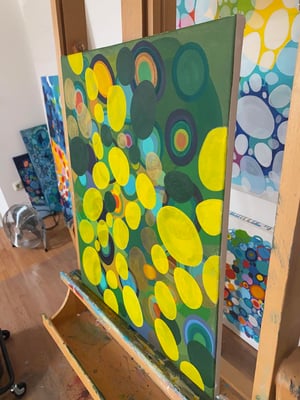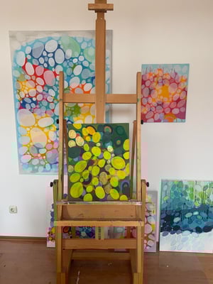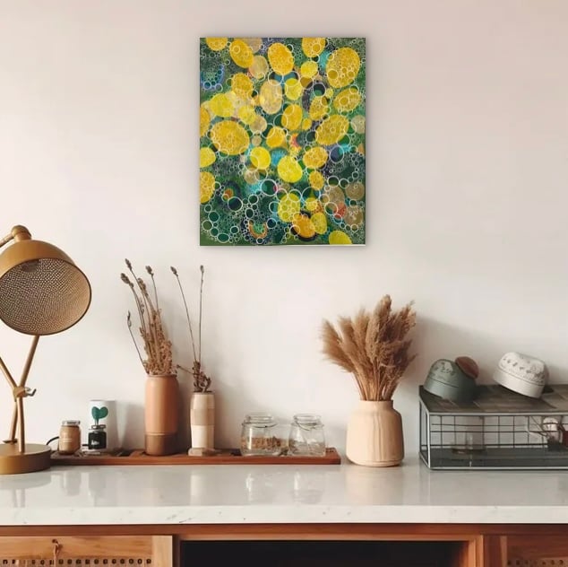 In diesem Kunstwerk verbinde ich lebendiges Acryl und die Tiefe von Tuschentinte mit der Pracht der Vergoldung. Sanfte, aber kraftvolle Formen und Farben fließen ineinander, symbolisieren die Verflechtung von Natur und Glanz. Es ist ein Werk, das Lebensfreude und einen Hauch von Luxus verströmt – ein wahres Leuchtfeuer für jeden Raum. Grün bewirkt eine tiefe Entspannung beim Betrachten, sorgt für Harmonie im Raum und in deinem Geist. Gold sorgt für Fülle, Energie und Stolz ( sei stolz auf das was du leistest und zufrieden mit allem was du tust).