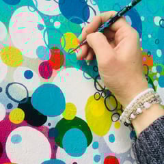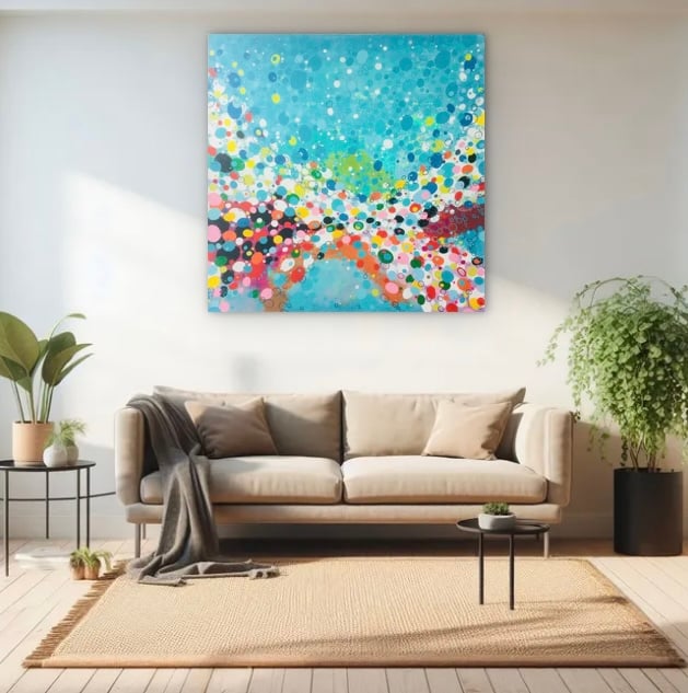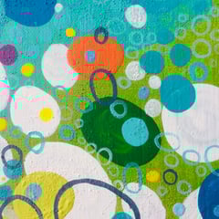 Die Farbwirkung der bunten Kreise wirkt aufsteigend und sprudelnd wie Gedanken auf einer Reise. Dieses Gemälde strahlt eine positive Energie aus und zeigt, dass das Leben bunt und harmonisch sein kann. Es ermutigt uns dazu, unsere Augen zu öffnen und die Schönheit in allem um uns herum zu erkennen. Die aufsteigenden Kreise symbolisieren Gedanken auf einer Reise voller Freude und Optimismus. Das Türkis der Farbwirkung gibt unserer Seele Kraft und Zuversicht für den Weg vor uns. Lasse dieses Bild als Erinnerung dienen, unser Leben mit Freude zu genießen!