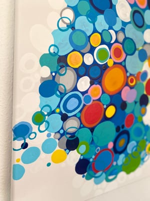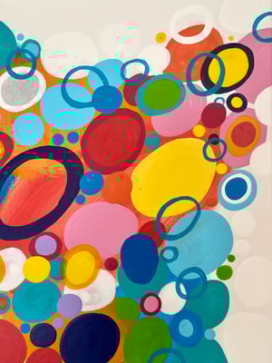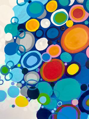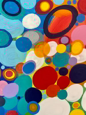 In diesem abstrakten Gemälde drücke ich mit Acryl und Tinte auf energetische Weise Erneuerung aus. Bunte Kreise symbolisieren vielfältige Neuanfänge, die ineinander übergehen und sich dynamisch verbinden. Diese Komposition soll im Betrachter Optimismus wecken und das Zuhause mit positiver Energie und Inspiration erfüllen. Wenn man denkt "das schaffe ich nie"- dann starte neu. Versuche die Dinge anders zu sehen. Schaffe keine Hindernisses sondern nutze sie als Wegbegleiter. Das Leben ist stete Veränderung - immer im Wandel.
