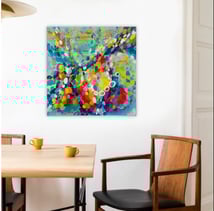 In dieser Serie sind die Kreise nicht mehr so präzise und rund. Ich mag den Effekt der handgeschriebenen, persönlichen Note. Alles ist nicht so steif und perfekt, sondern frei und sorglos, so wie das Leben am besten ist :-). dafür nutze ich Eine kleine technische Veränderung mit breiteren Pinseln und Handstrichen sowie Kreide und Graphitstift für grobe Umrisse und Zeichnungen. Starte jeden Tag mit einem positiven Gedanken und einem strahlenden Herzen.