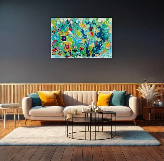 Das Kunstwerk kann auch hochkant gehängt werden.