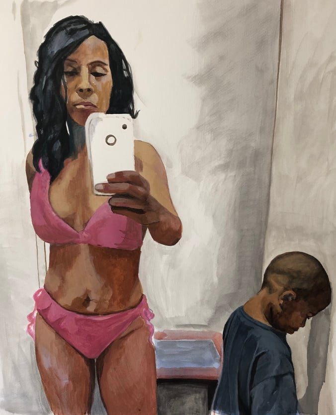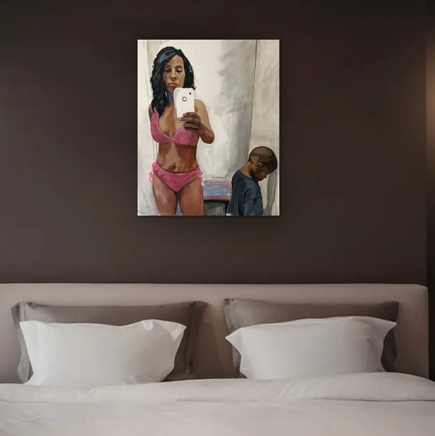 In meinem Werk fange ich die Essenz unserer heutigen Gesellschaft ein, in der sich alles um Selbstinszenierung dreht. Acryl auf Leinwand bringt Gefühle und eine tiefe Reflexion über die digitale Identität zum Ausdruck. Dieses figurative Gemälde wirkt mit seinem eindrucksvollen Kontrast zwischen Vordergrund und Hintergrund und lädt dazu ein, über persönliche versus öffentliche Perspektiven nachzudenken. Es wird eine starke, emotionale Energie in jeden Raum bringen, der die Diskussion über das moderne Selbst und seine Darstellung schätzt.
